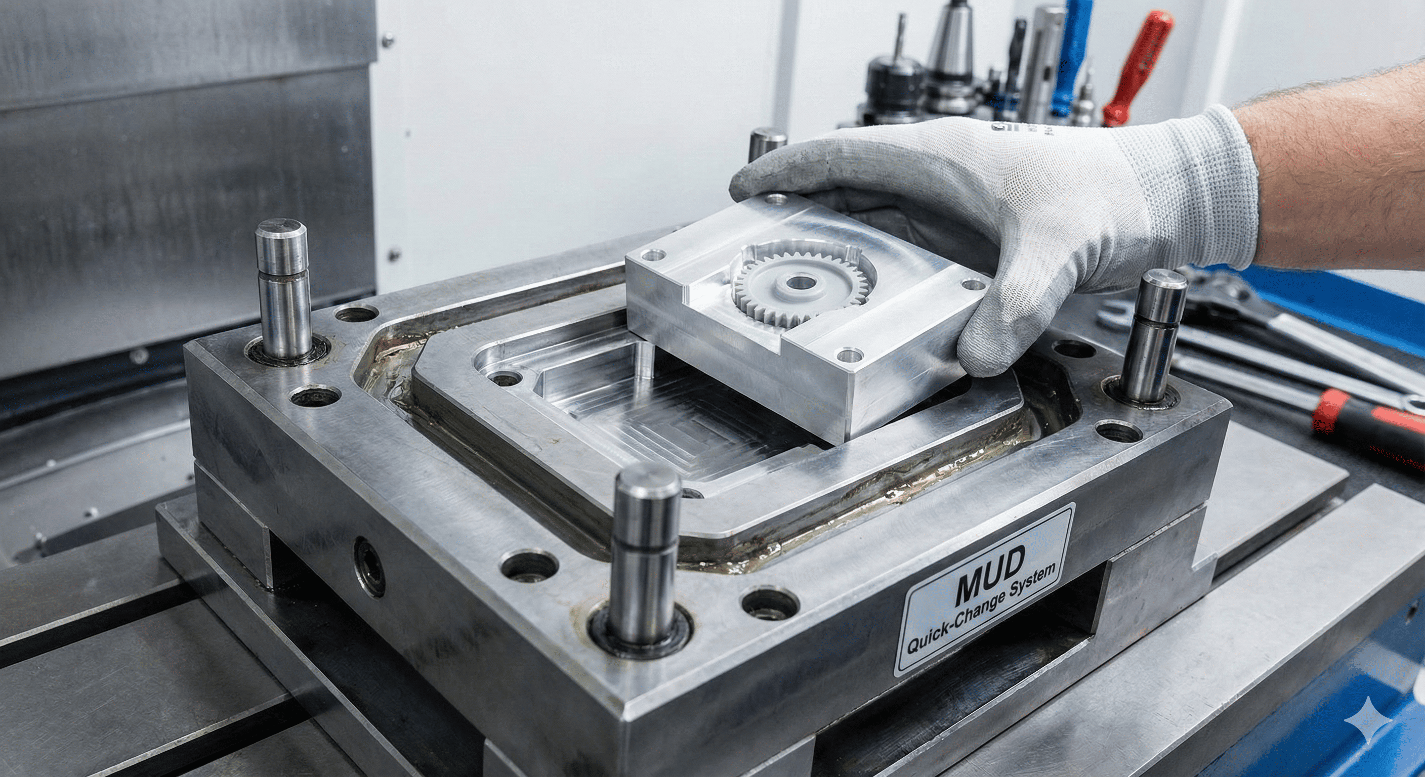 The heavy lifting happens during Mold Design. In high-volume production, you’re worried about every micro-second of cycle time, so you build complex “water jackets” for cooling. In low-volume molding, we simplify. We use Master Unit Die (MUD) bases—standardized frames that hold custom inserts. This means we only have to cut the “cavity” (the part shape) and not the entire massive block of metal.