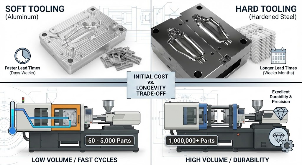 | Feature | Soft Tooling (Aluminum) | Hard Tooling (Steel) |