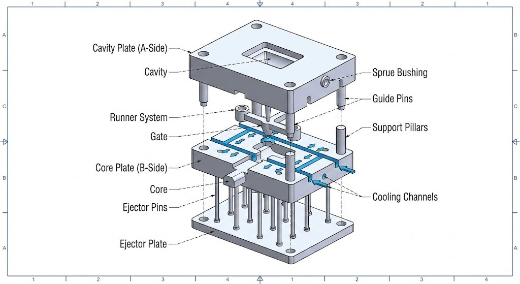 What are the Basic Components of an Injection Mold?