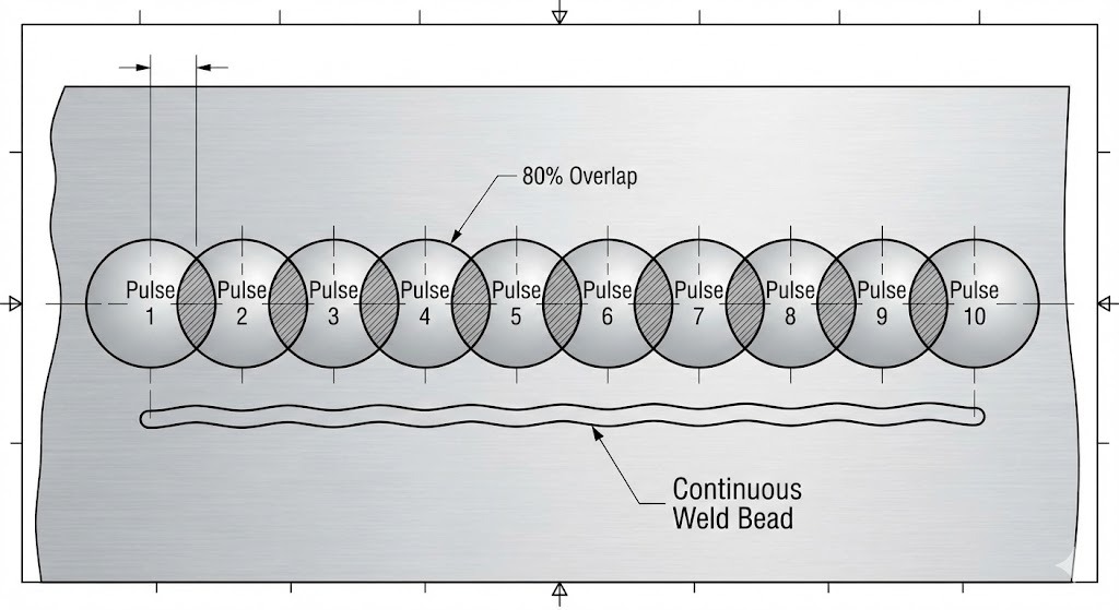 - Continuous/Overlapping Welding: Technicians overlap each “dot” by 70-80% to create a seamless, solid bead of metal.