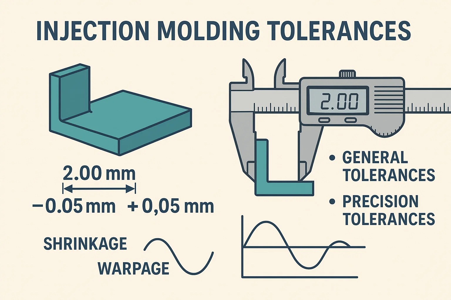 - Material Dictates Potential: You cannot hold the same tolerance on Polypropylene (high shrink) as you can on Polycarbonate (low shrink).